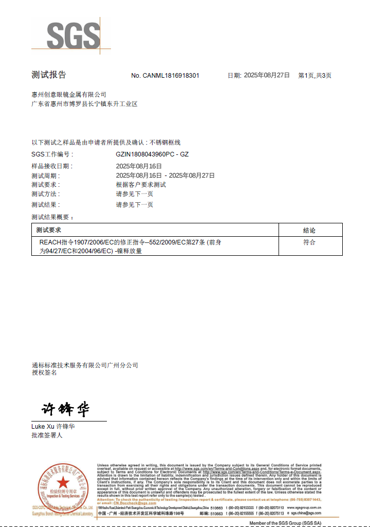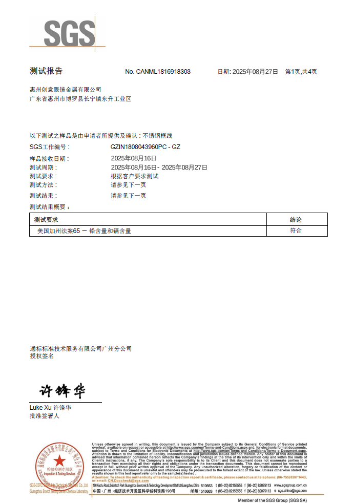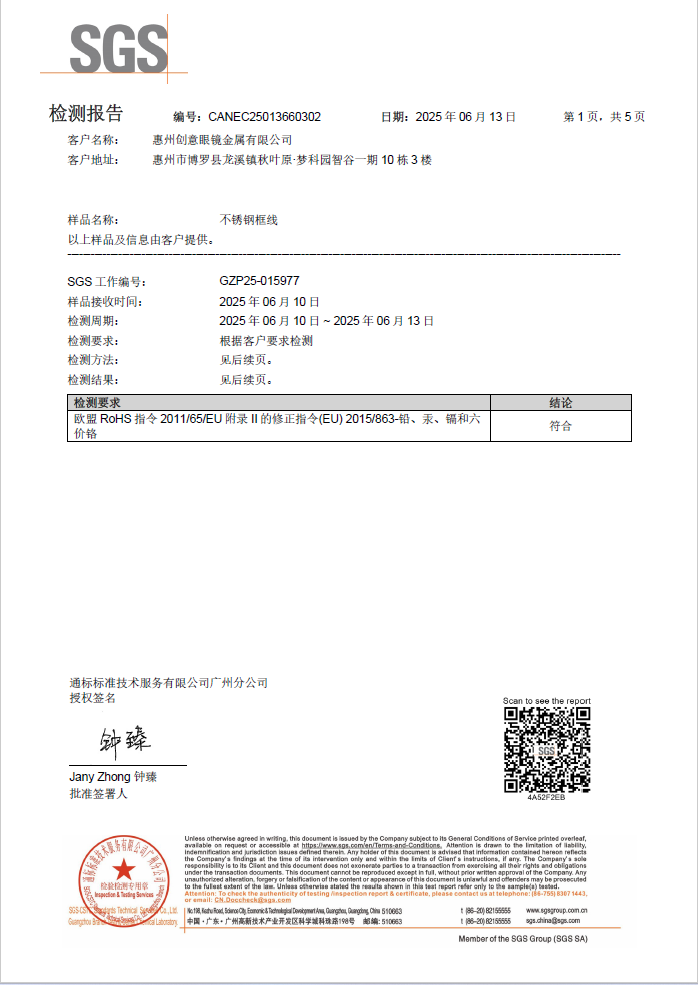 目前,本公司已通过I509001质量管理体系认证及第三方社会责任验厂,持有欧盟标准、RCS认证、镍释放达标、美国加州法案,不锈钢、锰料、钛的MSDS 以及TDS等多项权威检测报告,品质实力获全球市场认可。